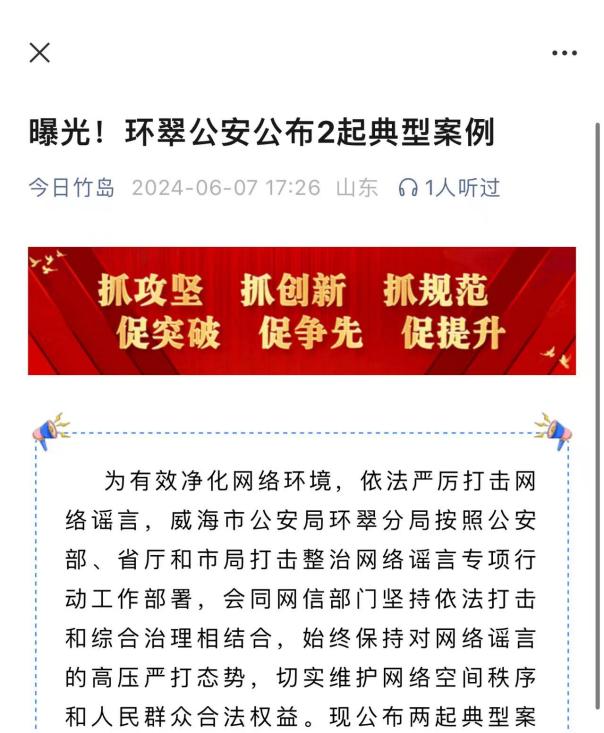 下一步,環(huán)翠公安將持續(xù)開展防范網絡謠言宣傳活動,重拳打擊網絡謠言案件,攜手各界群眾共建和諧清朗網上輿論環(huán)境。