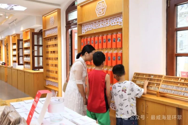 隨機(jī)走進(jìn)一家文創(chuàng)店,富有威海特色的桌面擺件、扇子、冰箱貼等琳瑯滿目,令人目不暇接,大家或?qū)⒕赖奈锲份p輕拿起,或俯下身子仔細(xì)觀賞。來自四川的王女士帶著孩子前來游玩,體驗過老街的魅力后,她忍不住贊嘆:“將古建筑元素融入到現(xiàn)代都市中,感覺非常奇妙,街上有很多文創(chuàng)店,都非常有特色,非常適合帶回去留作紀(jì)念。”