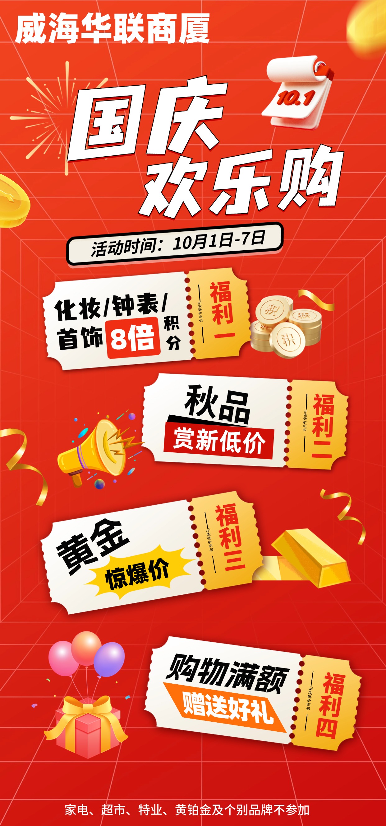 10月1日-7日,威海華聯(lián)商廈國(guó)慶歡樂(lè)購(gòu)