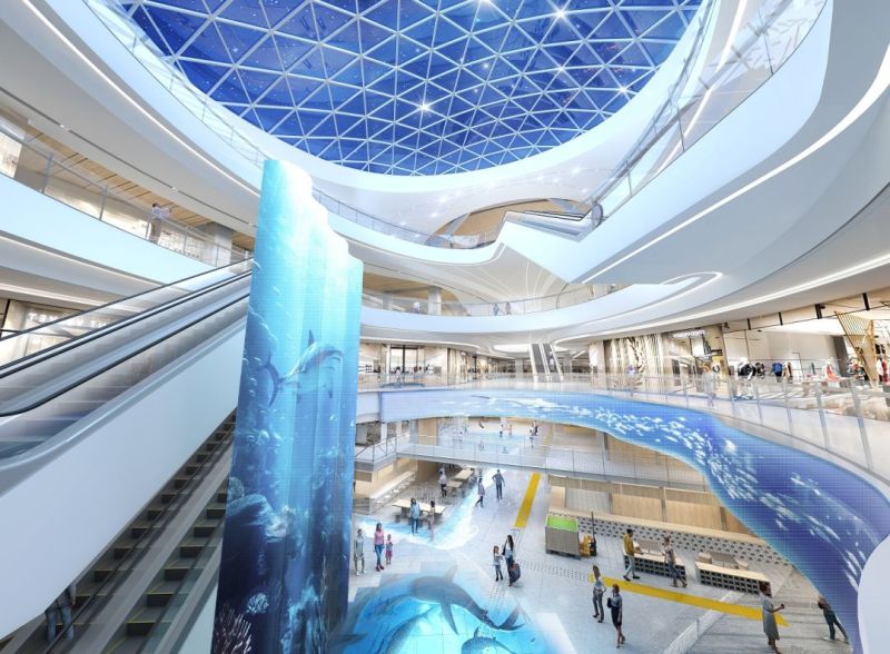 鯤鵬水擊,浩浩湯湯。威海灣城市綜合體以“鯨魚出海”為靈感,其中“鯨脊”部分為大跨度拱結(jié)構(gòu)配合預(yù)應(yīng)力空心樓板構(gòu)成,為全國(guó)首創(chuàng),其背后蘊(yùn)含的包容、博愛、拼搏等海洋文化,也為該項(xiàng)目增添了學(xué)養(yǎng)深厚的極致韻味。定位城市功能新提升、城市形象重塑造的威海灣城市綜合體,致力于創(chuàng)造一個(gè)多元化的現(xiàn)代城市商業(yè)空間。