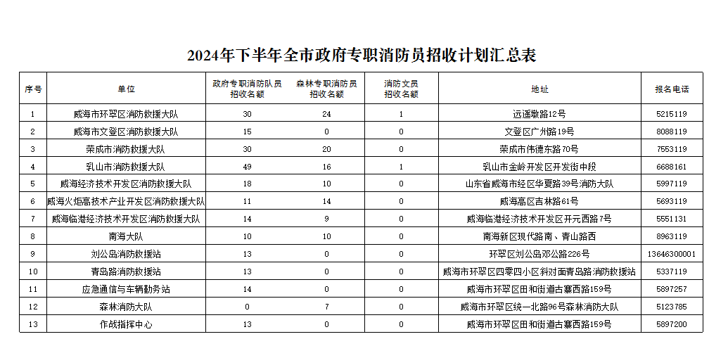 1.此次政府專職消防員招錄由威海市消防救援支隊組織。