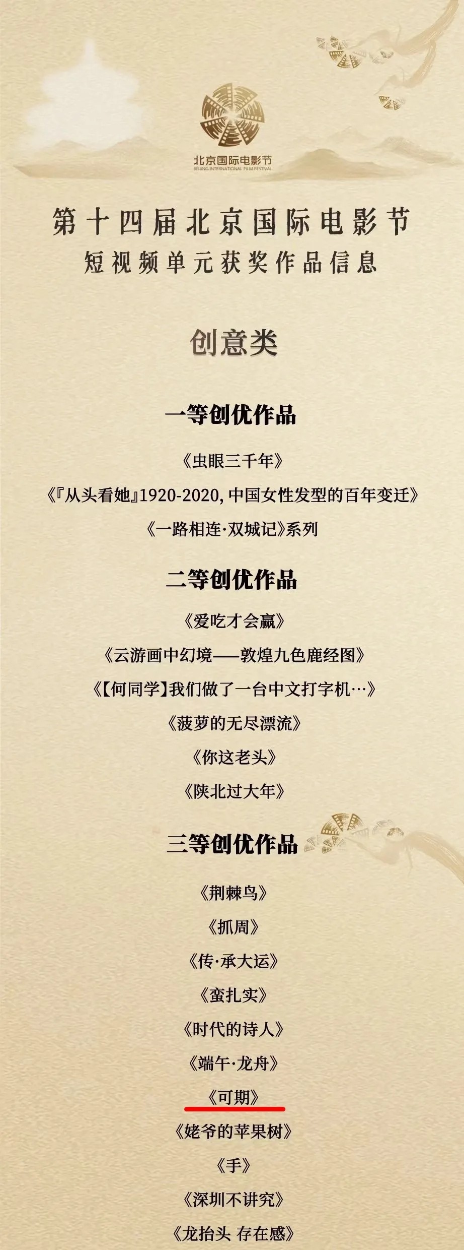 日前,第十四屆北京國(guó)際電影節(jié)短視頻單元主題論壇與榮譽(yù)盛典活動(dòng)在中國(guó)傳媒大學(xué)成功舉辦。青島銀行公益主題視頻《可期》從5000余部參賽作品中脫穎而出,榮獲本屆電影節(jié)·短視頻單元?jiǎng)?chuàng)意類三等創(chuàng)優(yōu)作品。